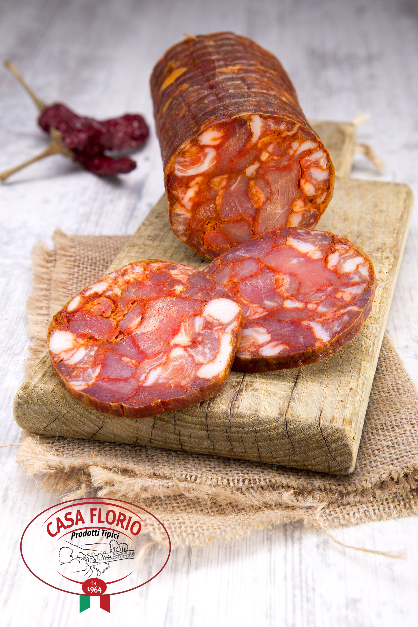 Vacuum-packed Ventricina available in two varieties: with hot chili pepper or with sweet chili pepper.